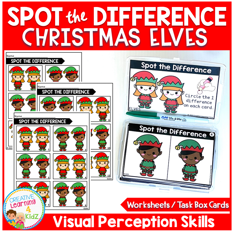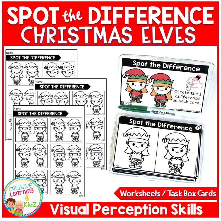 Spot the Difference Christmas Elves Task Box Cards Visual Perception Skills