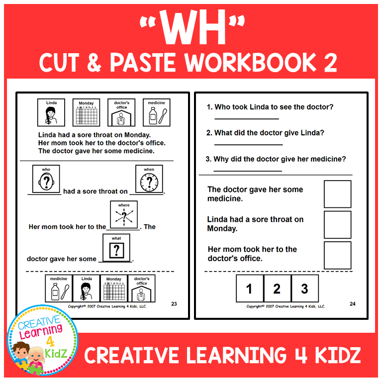 Perfect for kids learning to identify and respond to "WH" questions, the Cut & Paste WH Workbook 2 is an essential resource for building important comprehension skills.