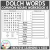 Keywords: common nouns, dolch words, sight words, literacy center, cut paste, writing skills, ELA workbook, homeschool, classroom tool, vocabulary, spelling help, word search, word tracing