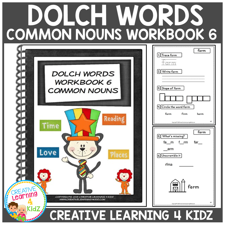 Dolch Common Nouns Sight Word Workbook – Trace, Write, Cut & Paste Activities