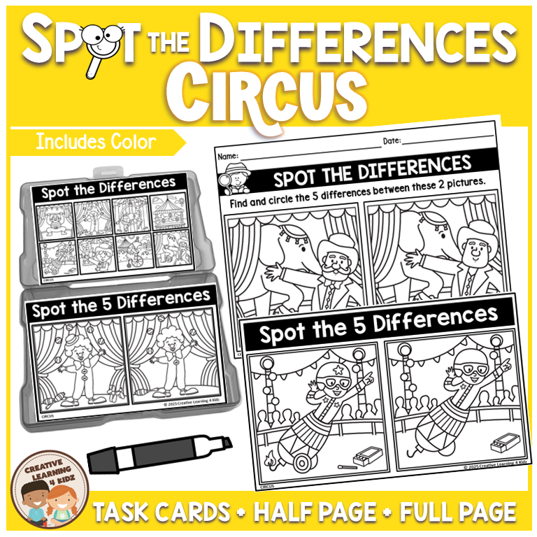 No prep required—just print, cut if desired, and watch your students light up with excitement as they spot the hidden changes under the big top!