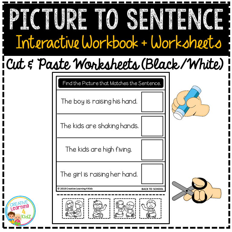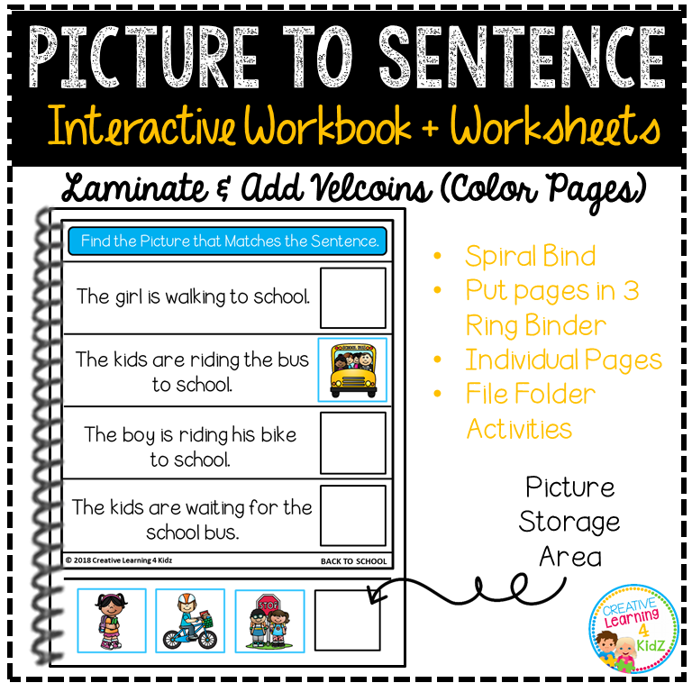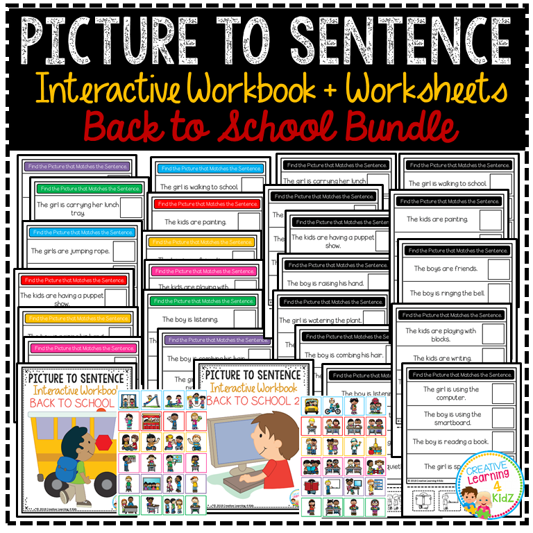 Back to School Picture to Sentence Interactive Workbook Fun Matching Worksheets