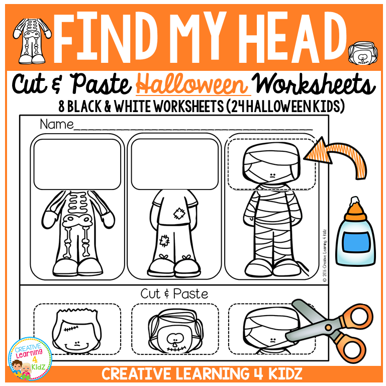Find My Head Cut & Paste Worksheets – Halloween Visual Matching Activity