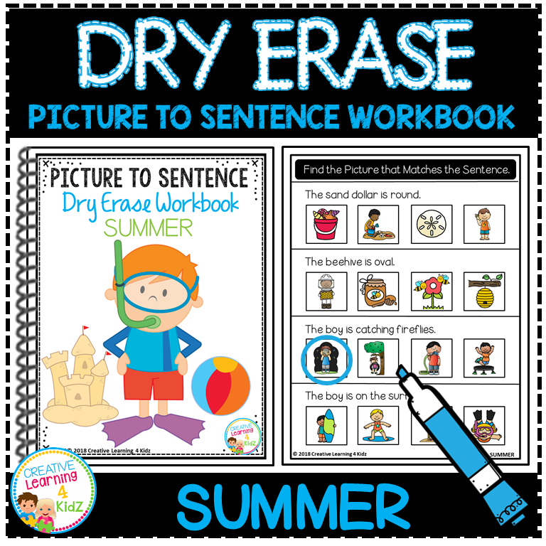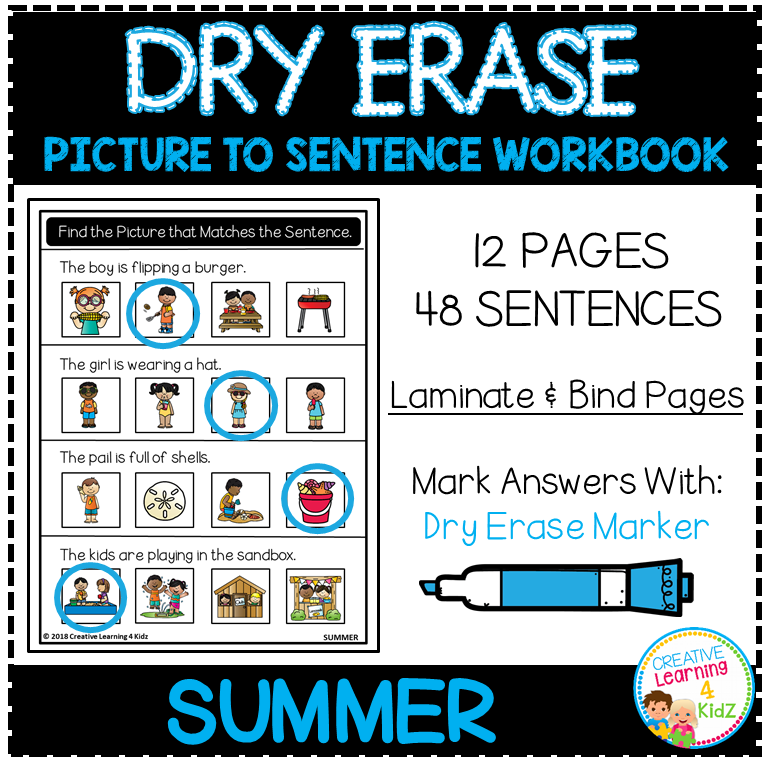 Boost early reading comprehension with this fun and interactive Summer Picture-to-Sentence Dry Erase Workbook!