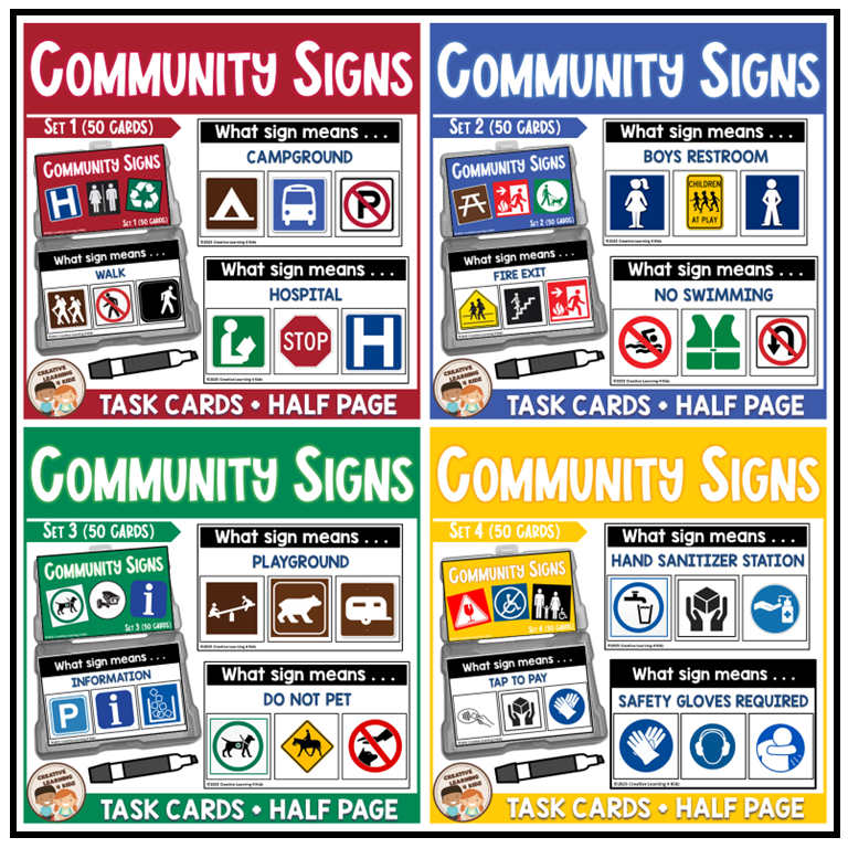 Help students master real-world sign recognition with this Community Signs Task Cards Complete Bundle! This comprehensive set of 200 task cards is designed to teach essential community signs in a fun and engaging way. Perfect for special education, life skills, ESL, and ABA programs, these cards support functional literacy and independence.