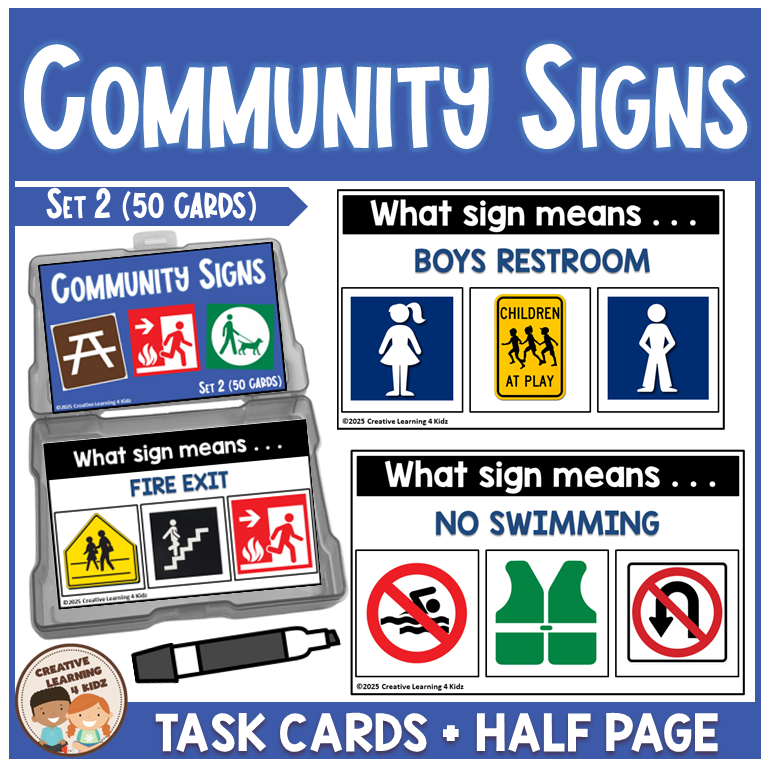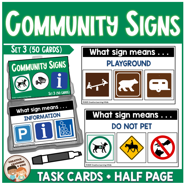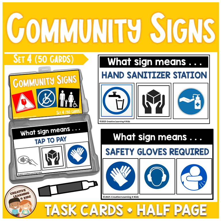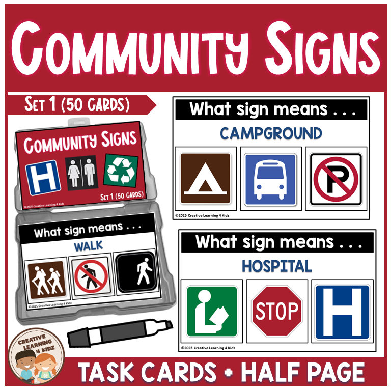 Make learning community signs easy and effective with this complete 200-card bundle! Whether you're teaching street safety, daily living skills, or independent navigation, these task cards provide the structured practice students need.