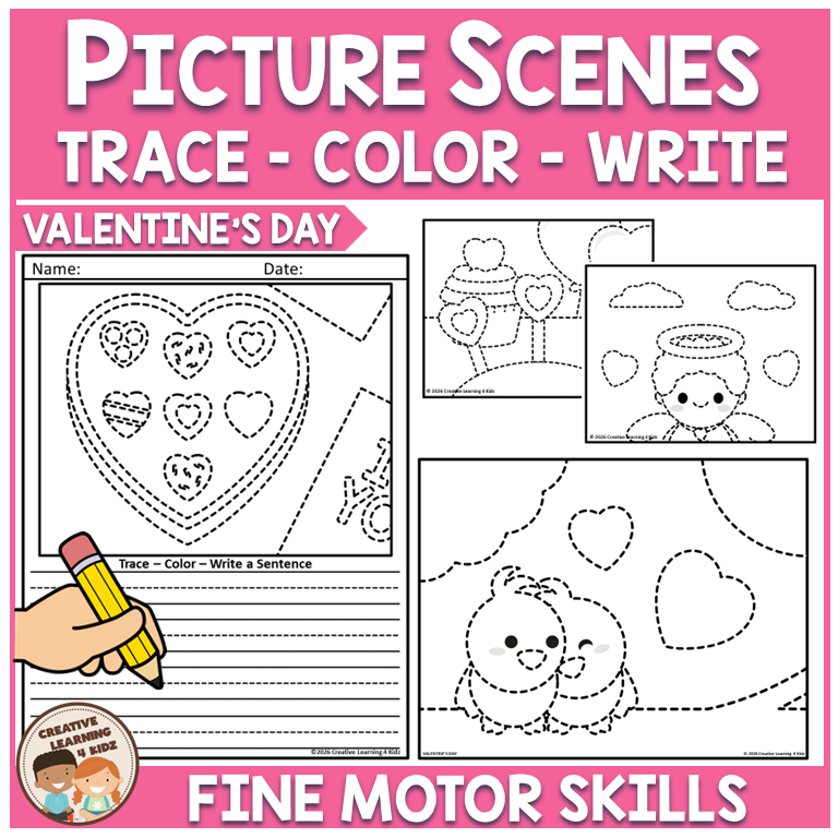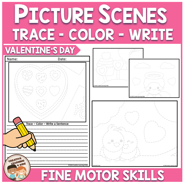 Make Valentine’s Day learning fun and skill-focused with these Valentine’s Day Tracing & Coloring Scenes! This engaging resource includes 10 different Valentine-themed scenes designed to build fine motor skills, support pre-writing development, and encourage creativity in young learners.