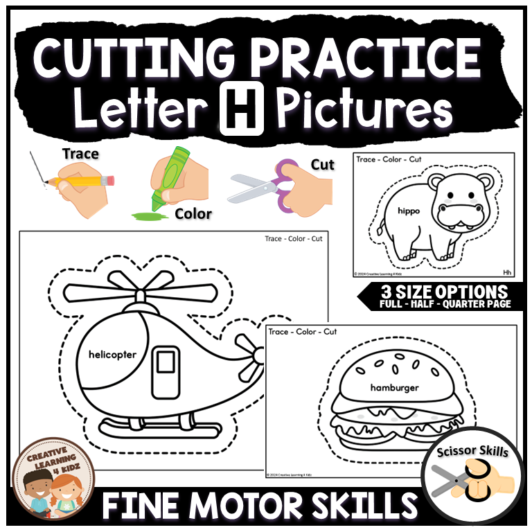 Our Letter "H" Cutting Practice Worksheets come in three convenient sizes, perfect for any classroom setting: