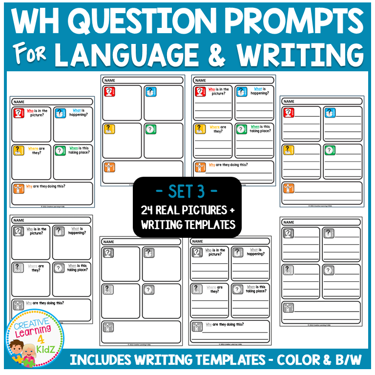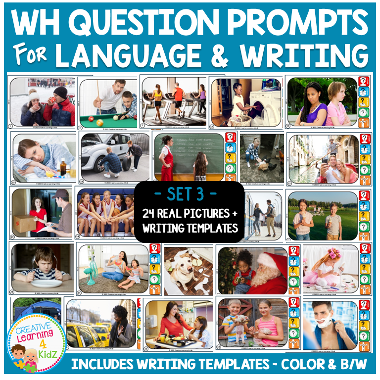 WH Question Prompts Set 3 Real Picture Cards & Writing Templates for Language