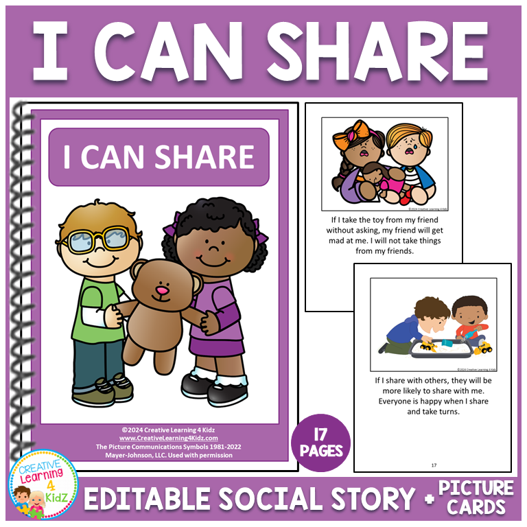 I Can Share Social Story is a perfect addition to any home, classroom, or daycare. We recognize the importance of social skills development, and this social story will help you teach your child how to share with their friends.