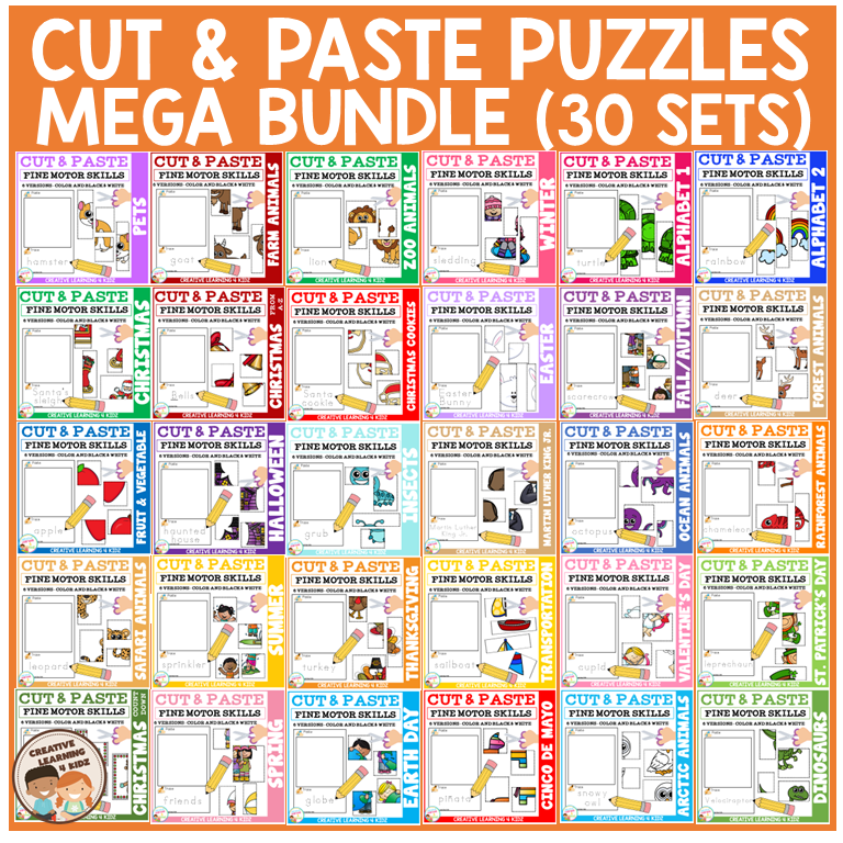 Cut and Paste Fine Motor Puzzle Worksheets – Mega Bundle