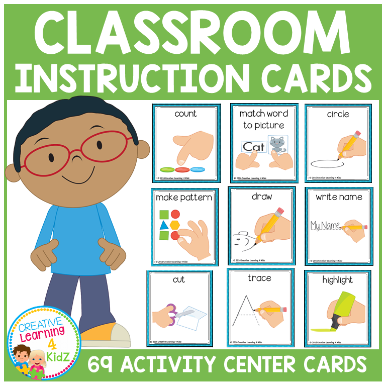 Support independence, classroom routines, and task comprehension with this must-have set of Classroom Activity Center Instruction Cards! These 69 printable cards are designed for young learners, special education students, ESL/ELL, and any child who benefits from visual cues and clear task instructions.