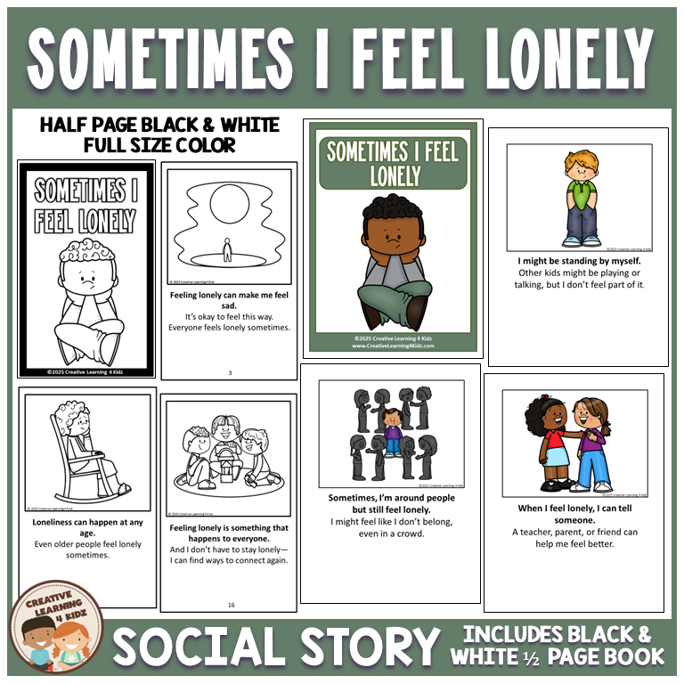 Keywords: social story, SEL resource, emotional skills, loneliness, autism support, special education, school counseling, visual supports, emotional literacy, kids emotions, mental health, loneliness story, autism feelings, emotional story, SEL for children, lonely feelings, emotional support, preschool emotions, special ed SEL, social skills story, emotional growth.