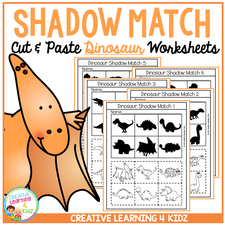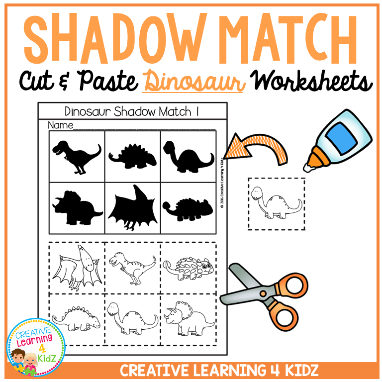 Shadow Matching Dinosaur Cut & Paste Worksheets Fine Motor Visual Discrimination
