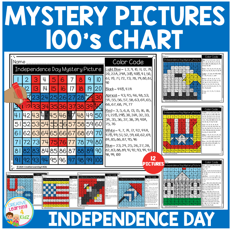 Are you looking for a unique and engaging way to celebrate the 4th of July? Our Independence Day 100s Chart Mystery Pictures are the perfect solution!