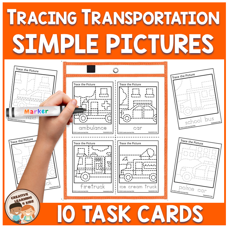 Includes: 10 Transportation Tracing Simple Picture Task Cards.