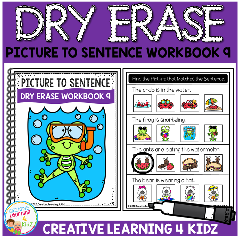 Bring summer fun into early literacy with Dry Erase Picture to Sentence Workbook 9 – Summer Edition! This interactive resource helps students build sentence comprehension and visual matching skills with a sunny twist.