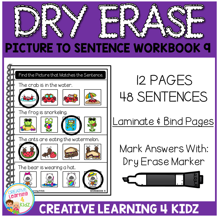 Keywords: summer workbook, early reading, dry erase page, sentence match, preschool ESL, SPED summer task, literacy center, visual sentence, summer learning, kindergarten fun, sentence picture, reusable book, reading practice