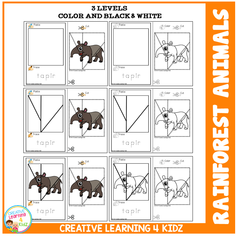 Keywords: Rainforest Animals, Cut and Paste, Fine Motor Skills, Tracing Words, Scissor Practice, Animal Puzzles, Preschool Jungle, Color and Trace, Puzzle for Kids, PreK Activities, Jungle Worksheets, Busy Bin Ideas, Hands-On Learning