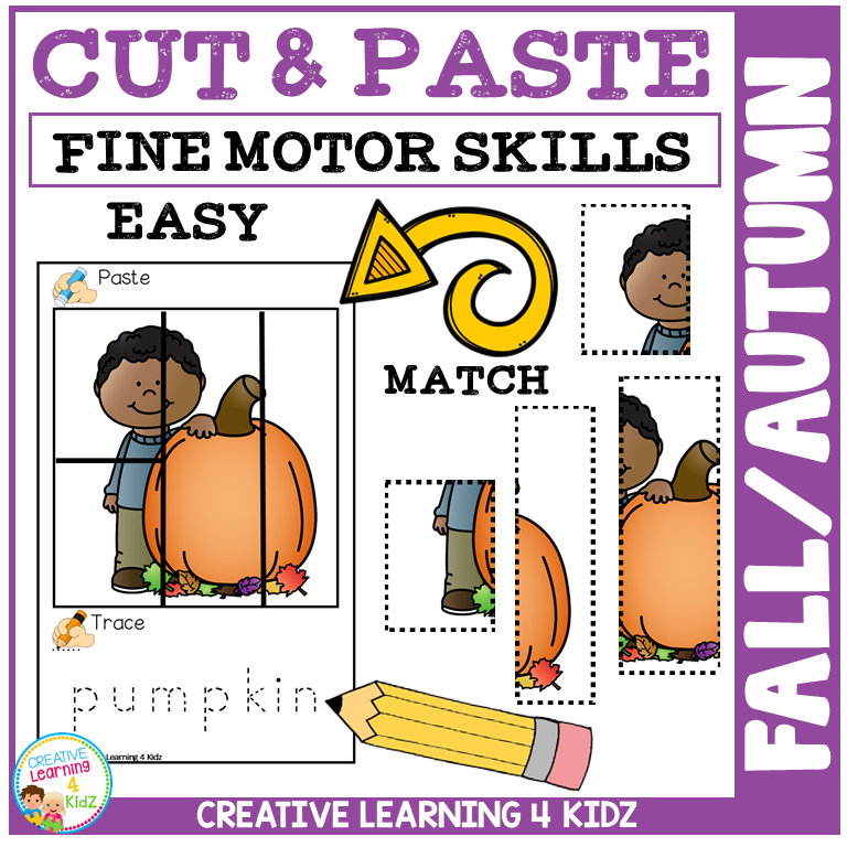 Fall Autumn Cut & Paste Worksheets – Fine Motor Puzzle Activities for Kids