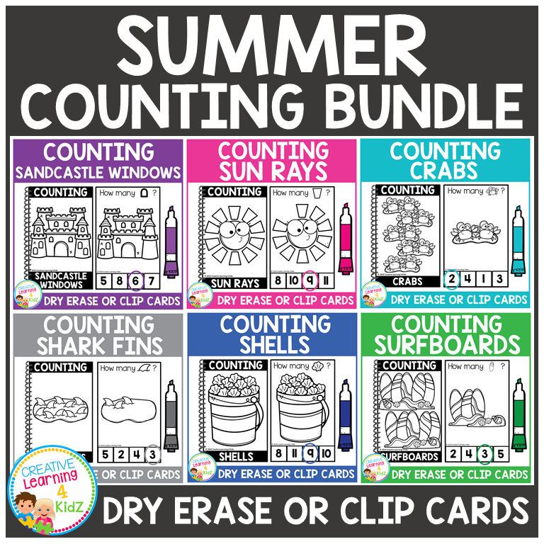 Keywords: summer counting, clip card bundle, task card set, numbers 0-10, math centers, dry erase cards, preschool math, kindergarten math, counting clip cards, summer math activities, fine motor skills, reusable math cards, early learning math