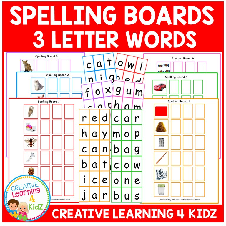- 6 Spelling Boards (8½ x 11) – Each board includes 6 different 3-letter words