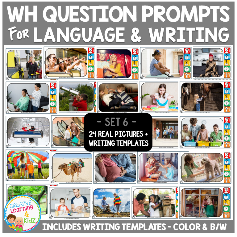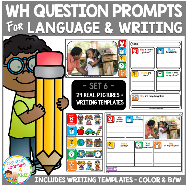 WH Question Prompts Set 6 Real Picture Cards & Writing Templates for Language