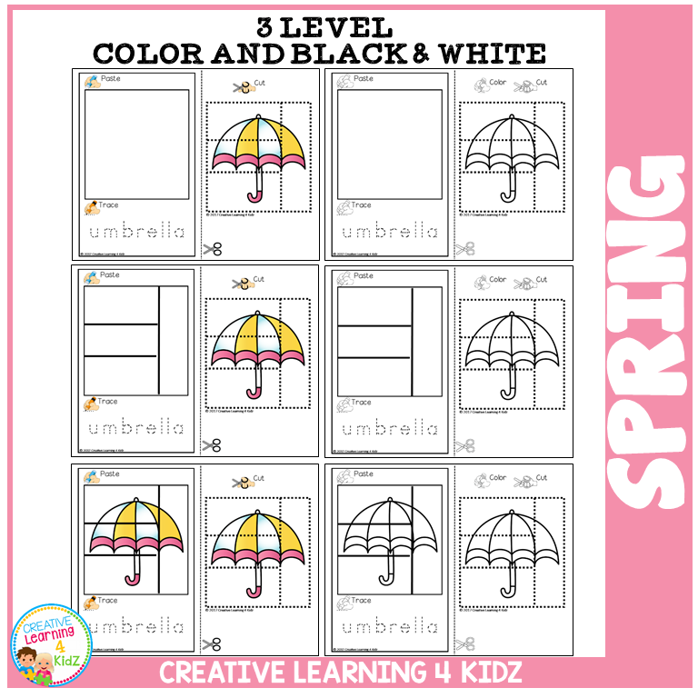 This spring cut-and-paste activity pack helps preschool and early elementary students develop fine motor control, scissor skills, and early literacy—all while enjoying cheerful seasonal content. With 180 total puzzles across 6 differentiated versions, it’s ideal for March through May learning.