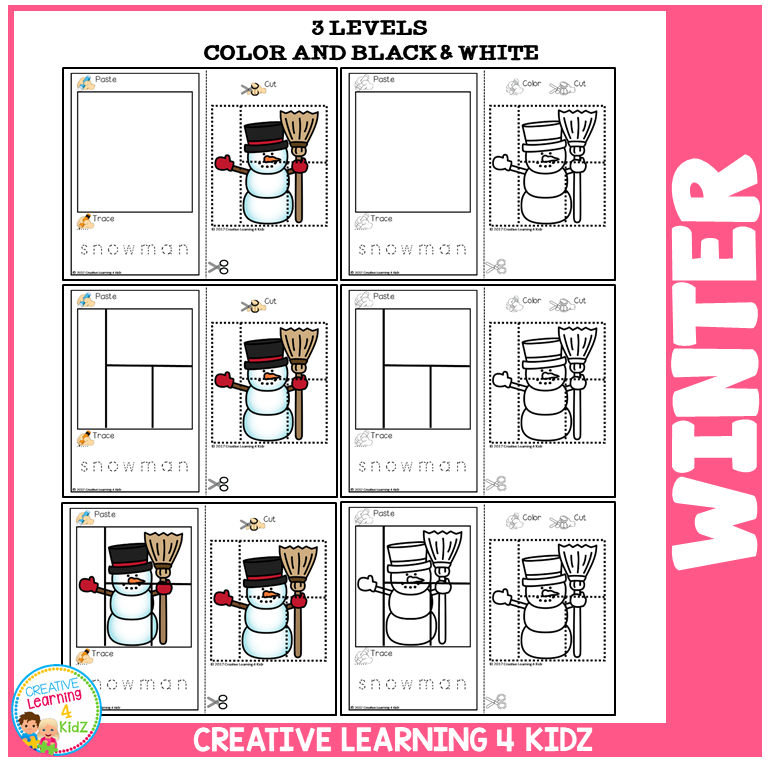 This winter-themed cut-and-paste worksheet set is perfect for helping young learners strengthen fine motor skills while exploring seasonal vocabulary. With 246 total puzzles across 6 differentiated versions, this resource provides engaging, skill-building activities all season long.