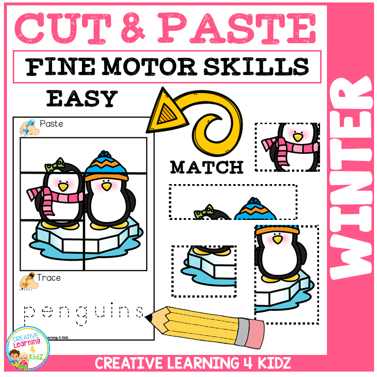 Winter Cut & Paste Worksheets – Fine Motor Puzzle Activities for Preschool