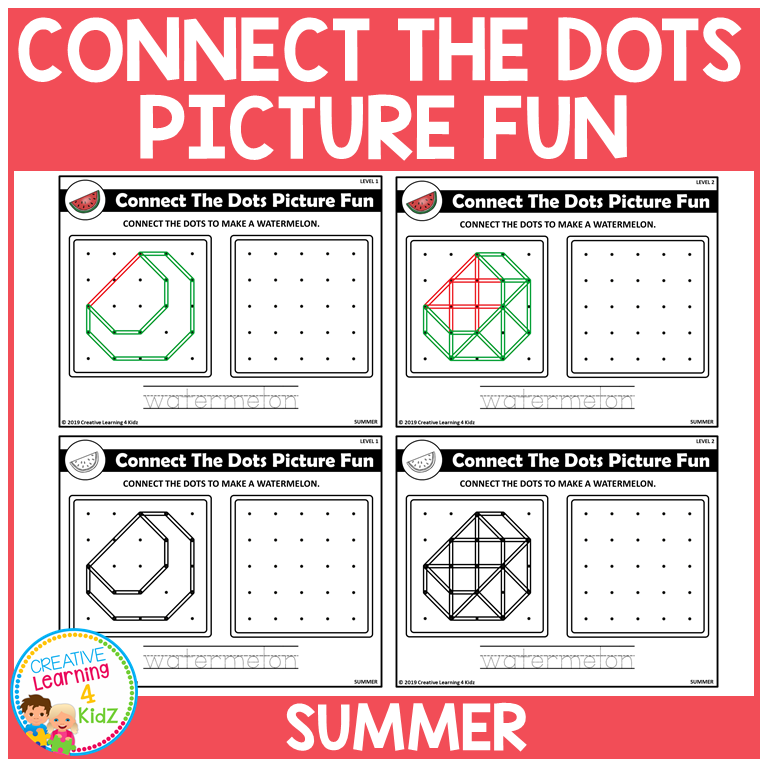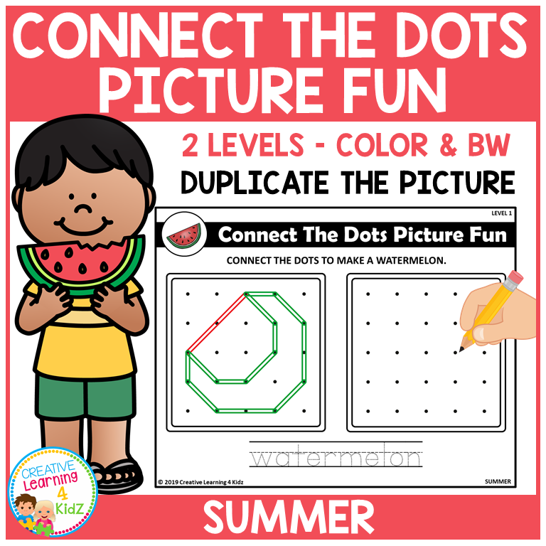 Instead of traditional dot-to-dot numbers, students visually match and recreate summer-themed images by connecting the dots on a blank grid, boosting their fine motor skills, spatial awareness, and visual discrimination. After drawing, kids will trace the matching picture word for extra handwriting practice.