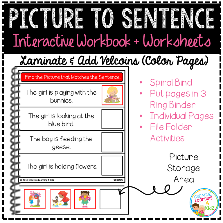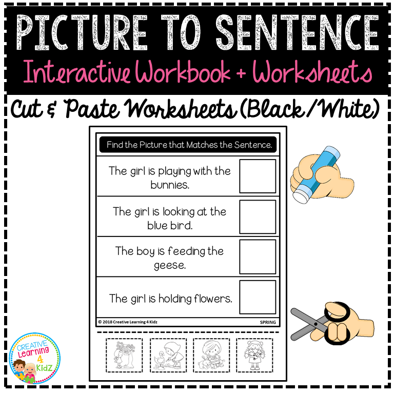 This printable workbook features 12 engaging sentence‑picture matching worksheets in both color and black & white formats, designed to reinforce spring-themed vocabulary, sentence structure, and visual discrimination.