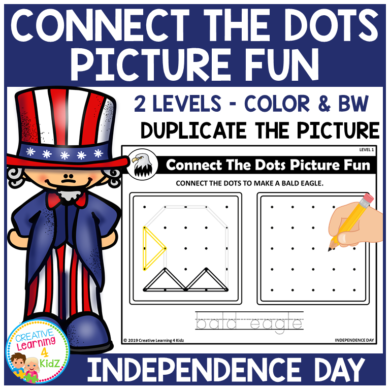 Celebrate the 4th of July with this Patriotic Connect-the-Dots Drawing & Tracing Pack! Designed for preschool and early elementary learners, this hands-on resource features 10 festive geoboard-style pictures across two skill levels—available in both color and black & white.