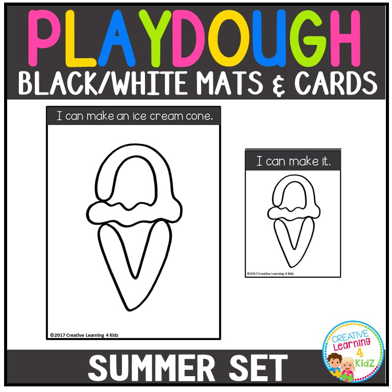 Includes a full set of visual playdough cards and mats in both color and black & white.
