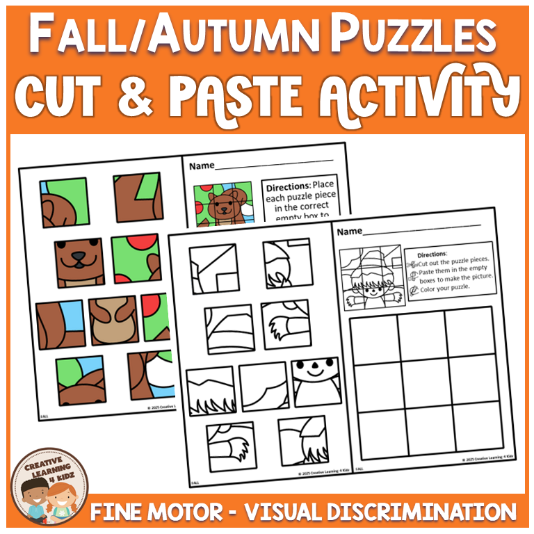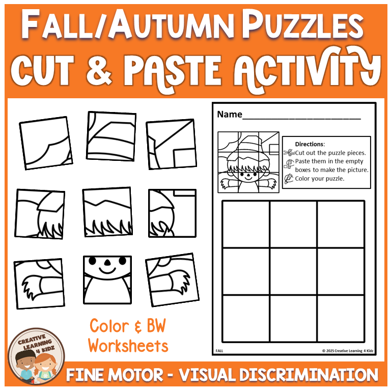 Keywords: Autumn puzzle worksheets, Fall cut and paste puzzles, Fine motor fall activity, Preschool autumn puzzles, Kindergarten fall set, Visual discrimination fall, Problem solving puzzles, Fall cut paste centers, Hands on autumn activity, Critical thinking fall, OT fine motor practice, Autumn worksheet pack, Seasonal classroom fall