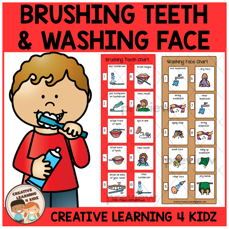 Brushing Teeth & Washing Face Visual Schedule Charts for Kids Daily Routine