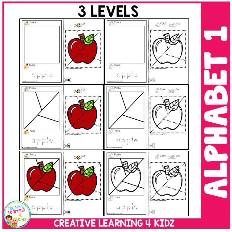 This cut and paste alphabet activity set combines puzzle fun with handwriting, scissor practice, and early literacy—all in one engaging printable resource! With 6 versions and 156 puzzles included, this versatile set is ideal for preschoolers, kindergartners, and homeschoolers.