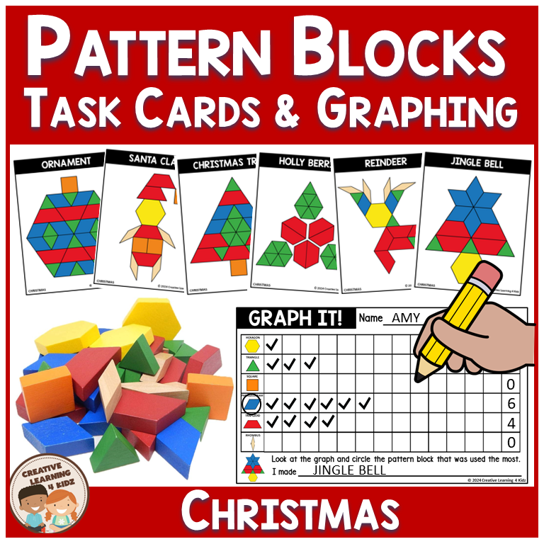 Are you looking for an engaging, hands-on activity to enhance learning during the holiday season? Our Pattern Blocks Christmas Task Cards and Graphing Worksheet are the perfect solution! Designed for fun and educational play, this set helps young learners develop critical thinking, fine motor skills, and graphing abilities—all while enjoying the festive spirit of Christmas.