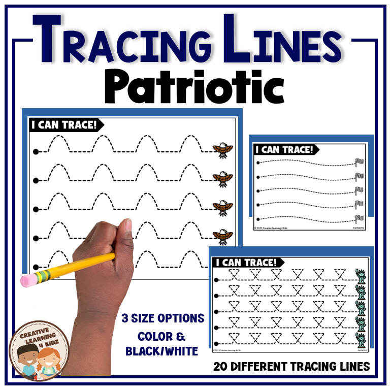 Keywords: 4th of July tracing, patriotic lines, fine motor sheets, tracing activity, summer tracing fun, preschool skills, prewriting lines, dry erase tracing, pencil control, July 4th printables, handwriting prep, independence day, homeschool summer