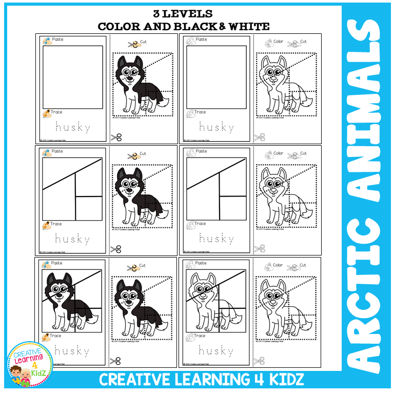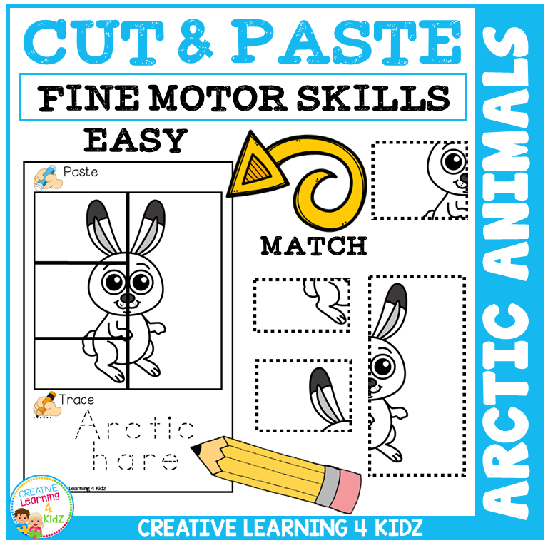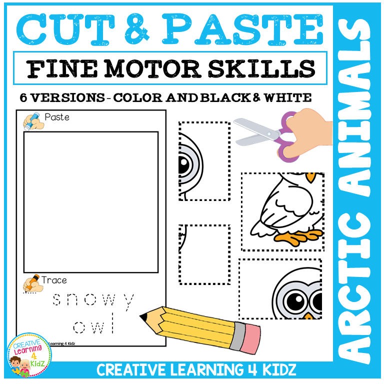 This hands-on worksheet set includes 120 engaging puzzles that help children improve scissor use, hand-eye coordination, and early literacy through cut, paste, trace, and color activities—all with a fun Arctic animal theme!