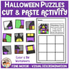 These Halloween puzzle worksheets are a low-prep, high-engagement resource that students will enjoy year after year. Simply print the black-and-white version for individual worksheets or laminate the color version for hands-on centers. Either way, your students will be practicing essential skills while having holiday fun!