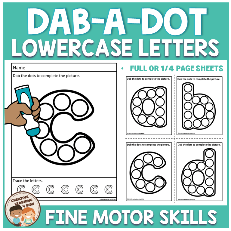 Keywords: lowercase letters, letter tracing, fine motor skills, dab-a-dot fun, pre-k literacy, early writing, alphabet practice, hands-on learning, multisensory activity, small group work, compact worksheets, letter formation, literacy centers, homeschool tools.