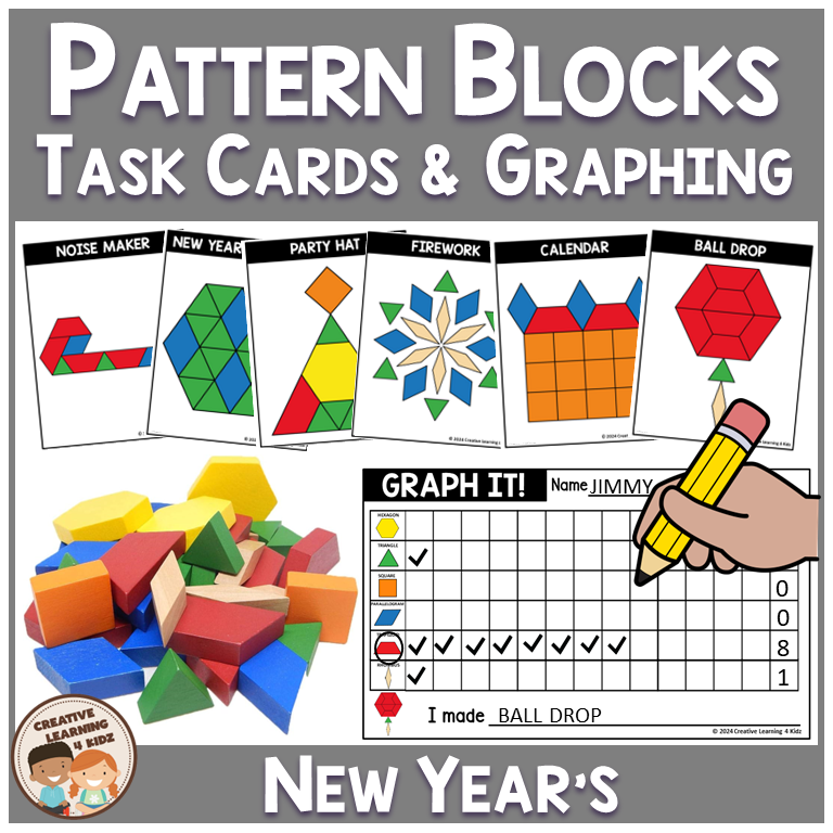 Ring in the New Year with a fun, hands-on learning activity that’s perfect for math centers, classrooms, and at-home learning! Our Pattern Blocks New Year’s Task Cards and Graphing Worksheet combine festive fun with educational value, helping young learners develop critical thinking, fine motor skills, and graphing abilities while celebrating the start of a new year.