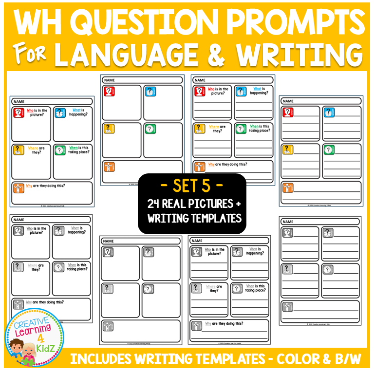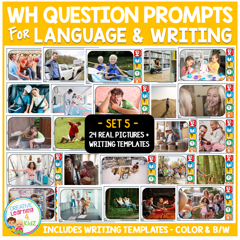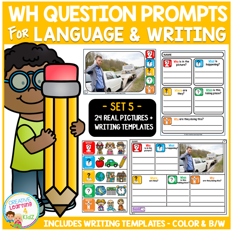 WH Question Prompts Set 5 Real Picture Cards & Writing Templates for Language