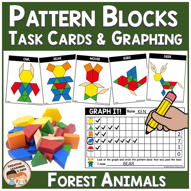 Pattern Blocks Forest Animals Task Cards & Graphing
