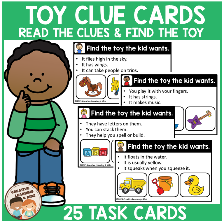 • 25 Toy Clue Task Cards (prints 2 per page)