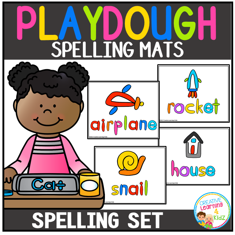 Each full-page mat features a themed image and word for every letter of the alphabet—from A to Z—with 3 spelling mats per letter. Students can roll playdough to shape the letters or trace with dry-erase markers for repeated practice.