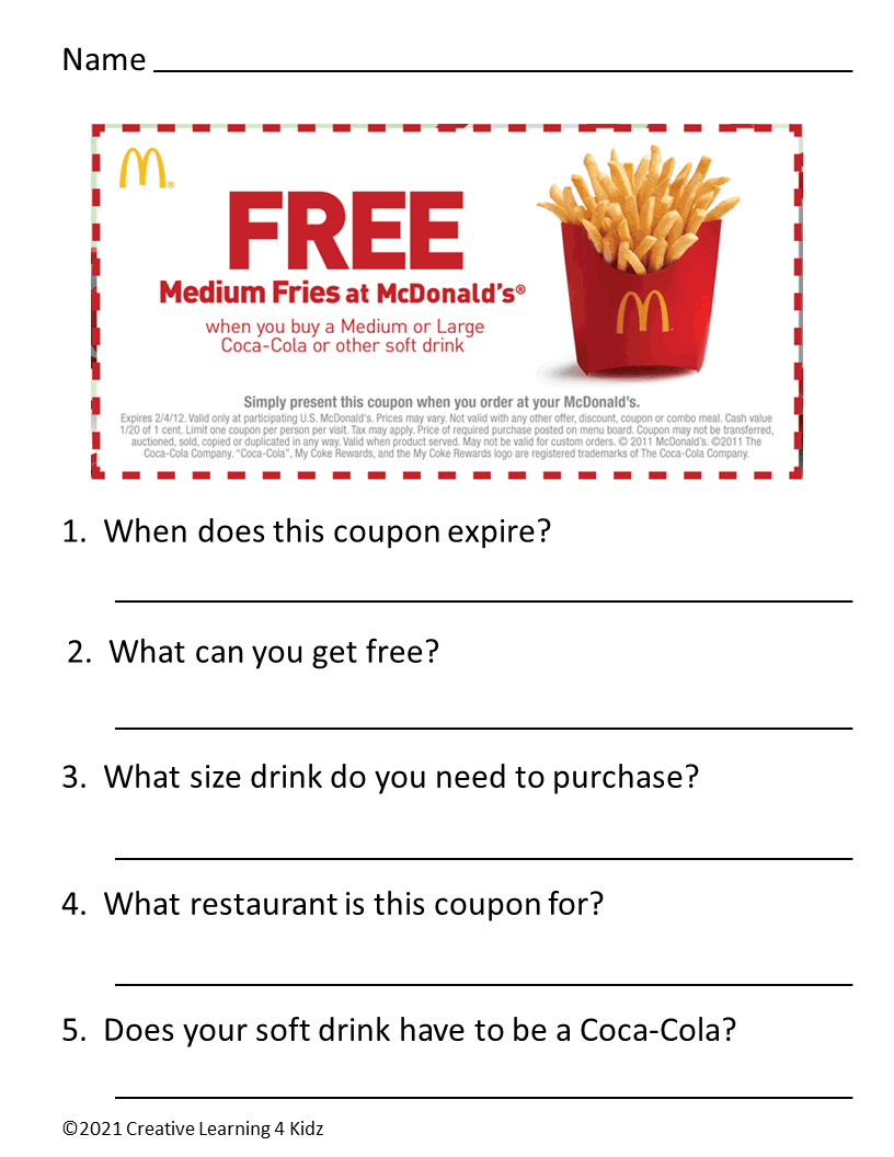 - Real-Life Application: Help your students develop crucial life skills by working with realistic restaurant coupon scenarios.