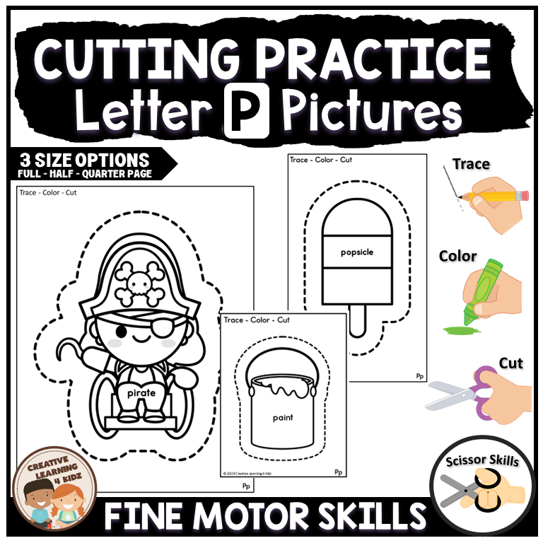 Our Letter "P" Cutting Practice Worksheets come in three convenient sizes, perfect for any classroom setting: