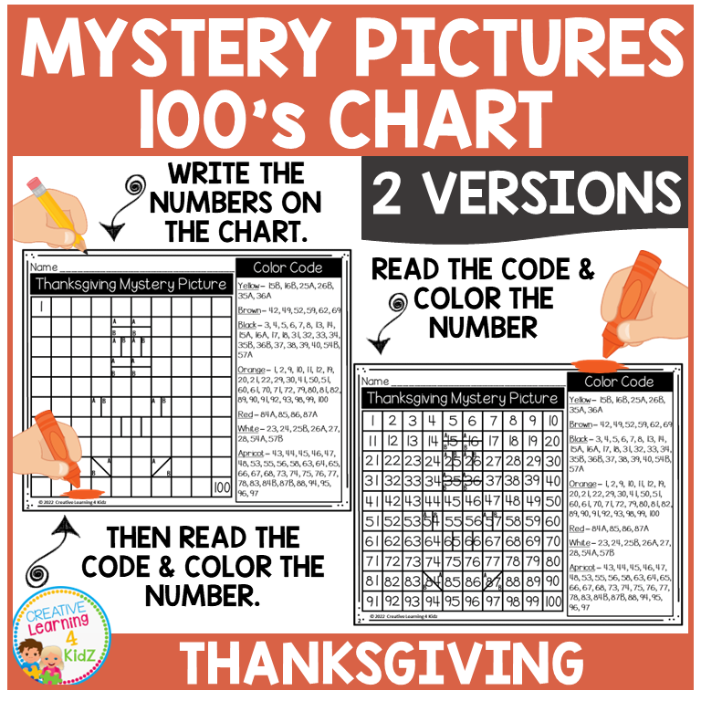 Make Math Fun This Thanksgiving with 100s Chart Mystery Pictures!